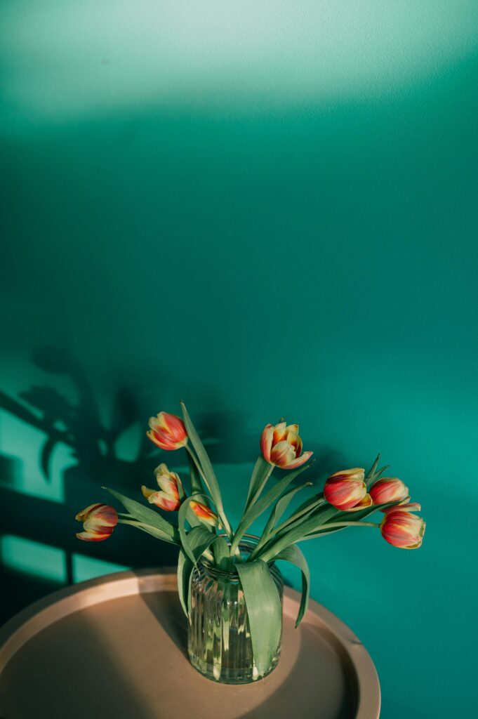 - A single arrangement of tulips or cherry blossoms