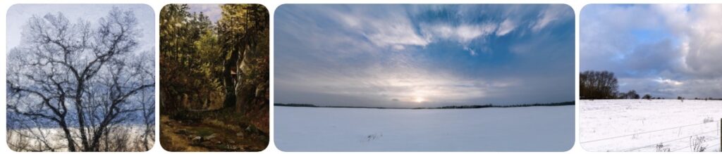 February landscapes are stripped of foliage. Structure is visible. Trees become line drawings against pale skies.